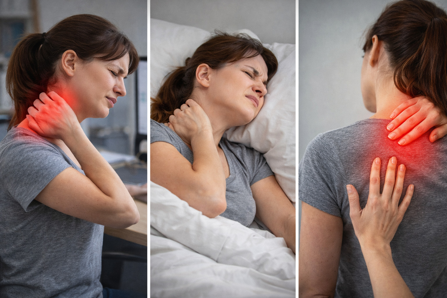 ストレートネック傾向がある人では、起床時に首を動かしづらい、左右を向きにくいと感じることがあるようです。ただし、一時的な疲労や冷えが原因の場合もあるため、数日で自然に落ち着くかどうかを見ながら判断することがすすめられています。