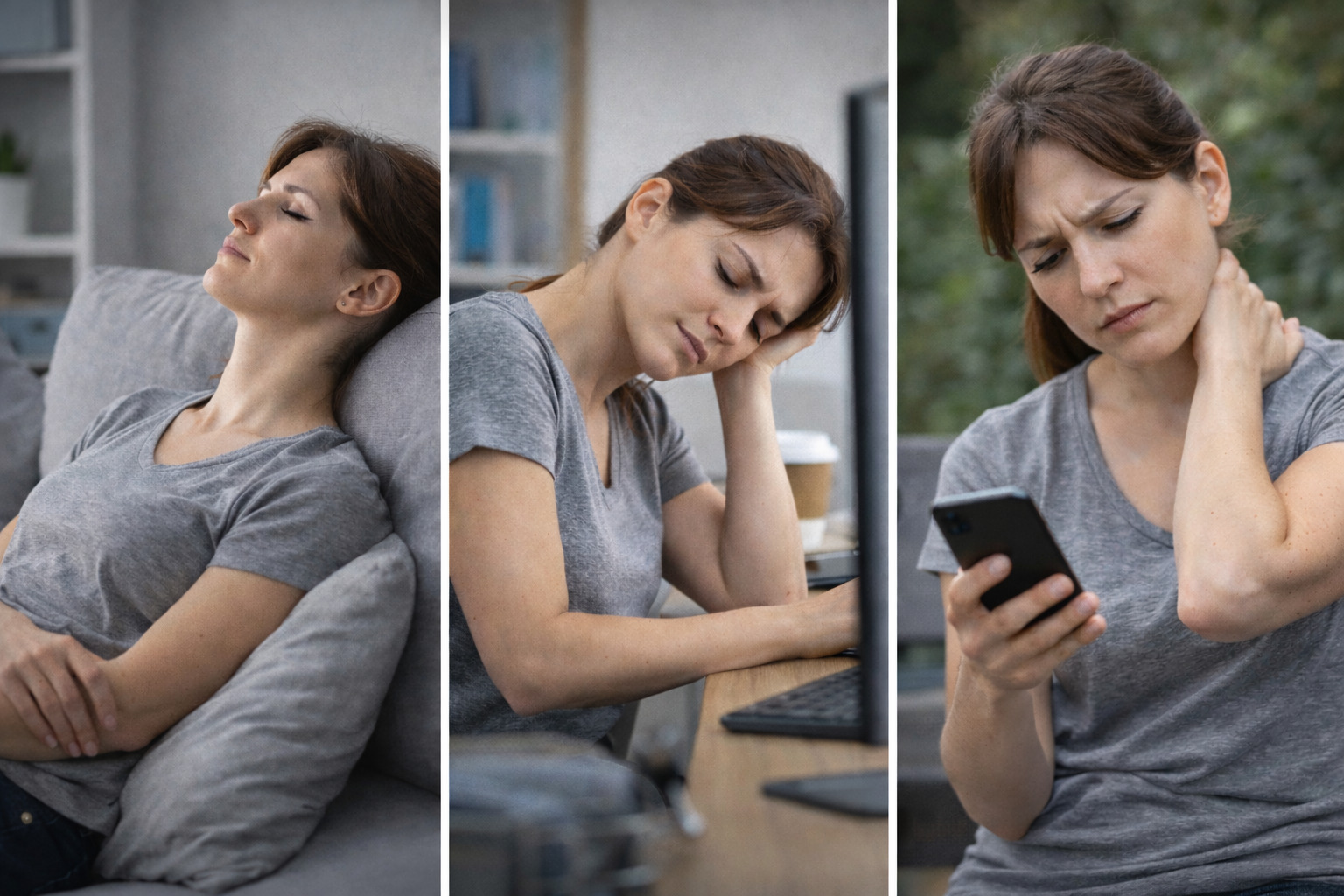 また、首まわりの緊張が続くことで、頭が重く感じたり、目の奥が疲れやすくなったりするケースも見られると言われています。ただし、これらの症状は目の使いすぎや睡眠不足など、別の要因でも起こるため、あくまで判断の目安のひとつとして捉えることが大切だと考えられています。