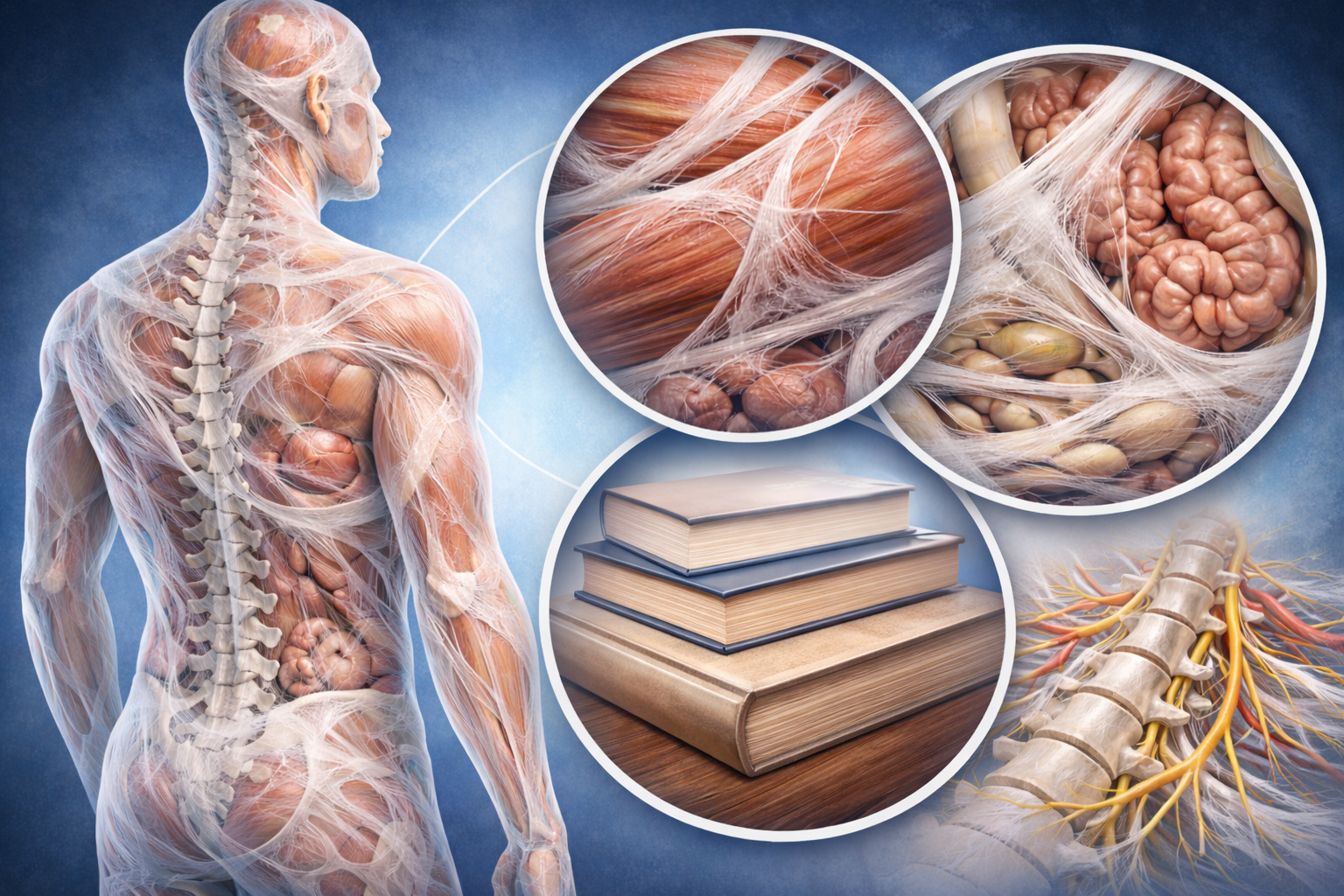 ファシアには、筋膜のほかにも腱・靭帯・内臓を包む膜など、さまざまな結合組織が含まれる概念として紹介されています。体の中で組織同士が滑らかに動くためのつなぎ役のような存在とも表現されています。つまり局所だけではなく、全身をひとつのユニットとして見る視点が重要だと考えられています。