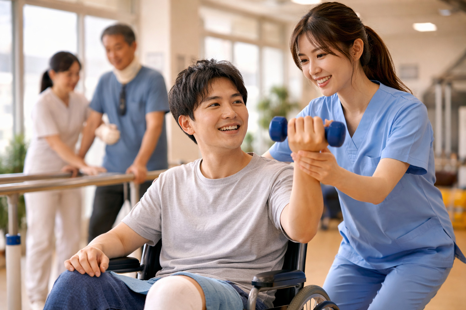 骨折の場合、ギプスが取れた後もリハビリが必要です。リハビリを通じて筋力を回復し、正常な動きを取り戻します。