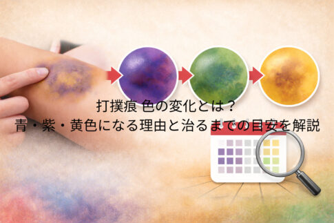 「紫っぽかったのに、青くなって、黄色っぽくなってきた…これ大丈夫?」実はこれ、内出血の自然な変化と言われています。血液が体に吸収されていく過程で、紫 → 青 → 緑 → 黄色というように色が変わっていくことが多いそうです。