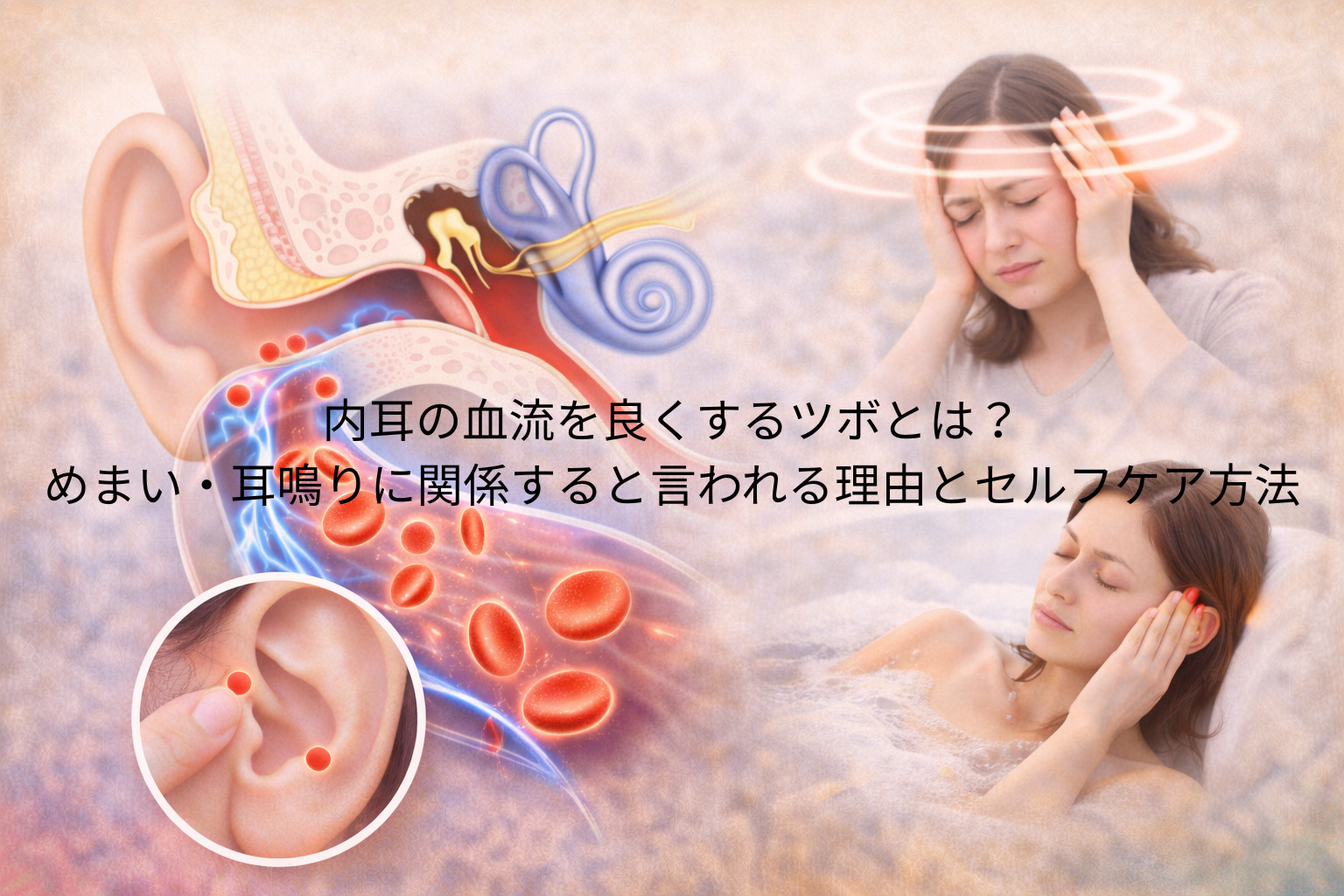 内耳の血流は首を通る血管とも関係が深いため、首・肩がこわばると巡りが滞りやすくなると考えられています。