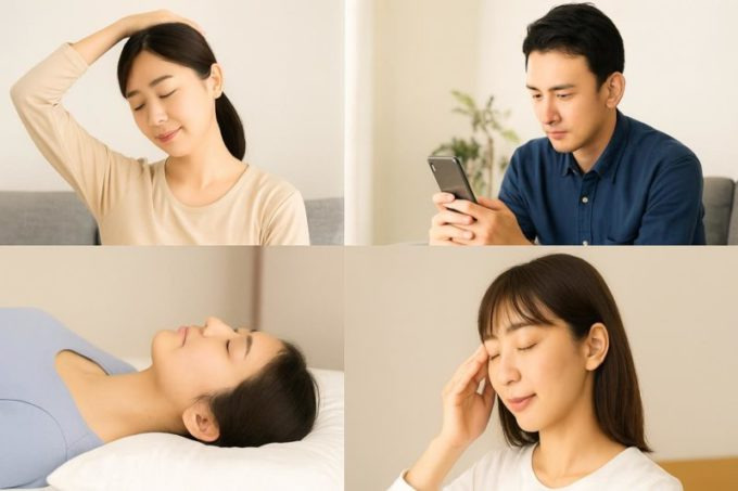 「頭が痛いのに、動かして大丈夫ですか?」そんな質問も多いですが、首や肩を無理のない範囲でゆるめる意識が役立つこともあると言われています。深呼吸をしながら肩をすくめてストンと落とす、背中を軽く伸ばすなど、強い刺激を避けることが大切と考えられています。