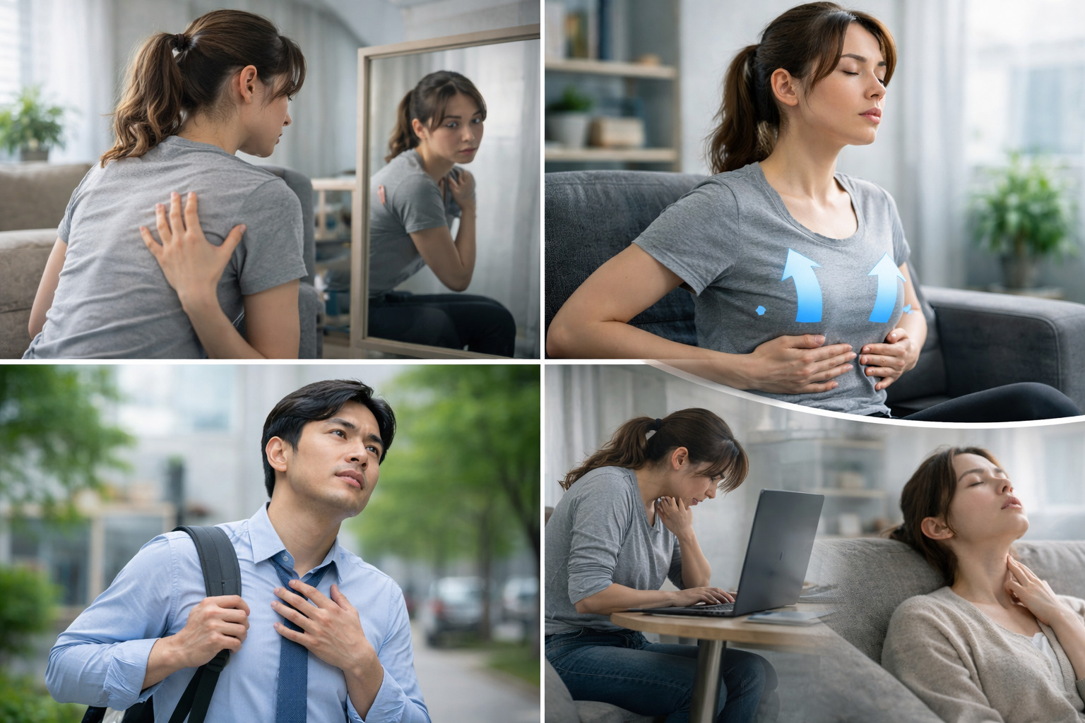 「いつ息苦しくなるか」を思い出すことも重要です。例えば、長時間のパソコン作業中だけ苦しいのか、歩いているときなのか、それとも休憩中なのか。姿勢が崩れやすいタイミングで症状を感じる人が多いと言われています。特に集中しているときほど呼吸が浅くなりやすいため、場面ごとの傾向を知ることが改善のヒントになる場合もあるようです。