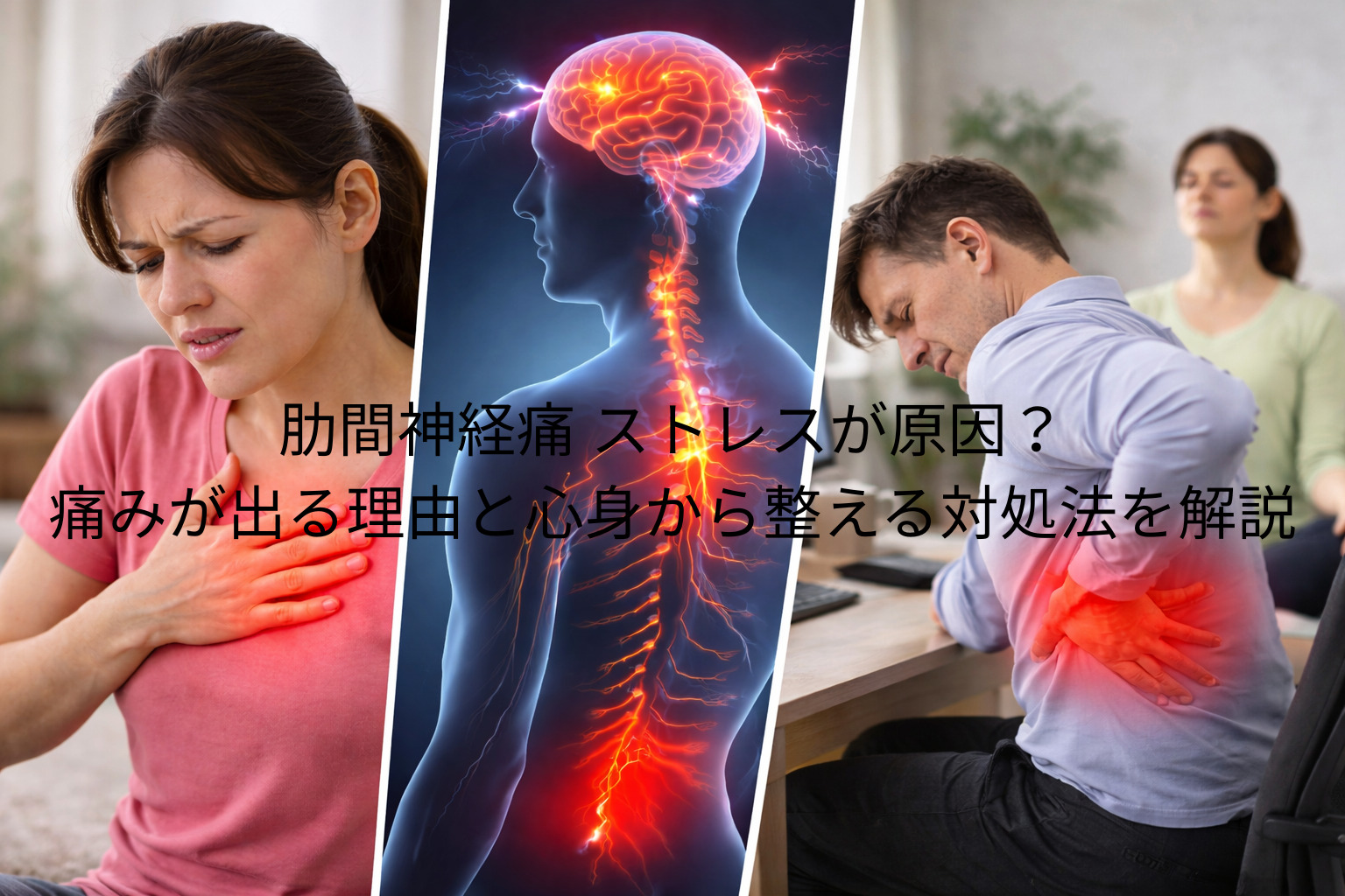 こう感じる人は少なくありません。実際、肋間神経痛は外傷や姿勢だけでなく、精神的ストレスが関係するケースもあると言われています。