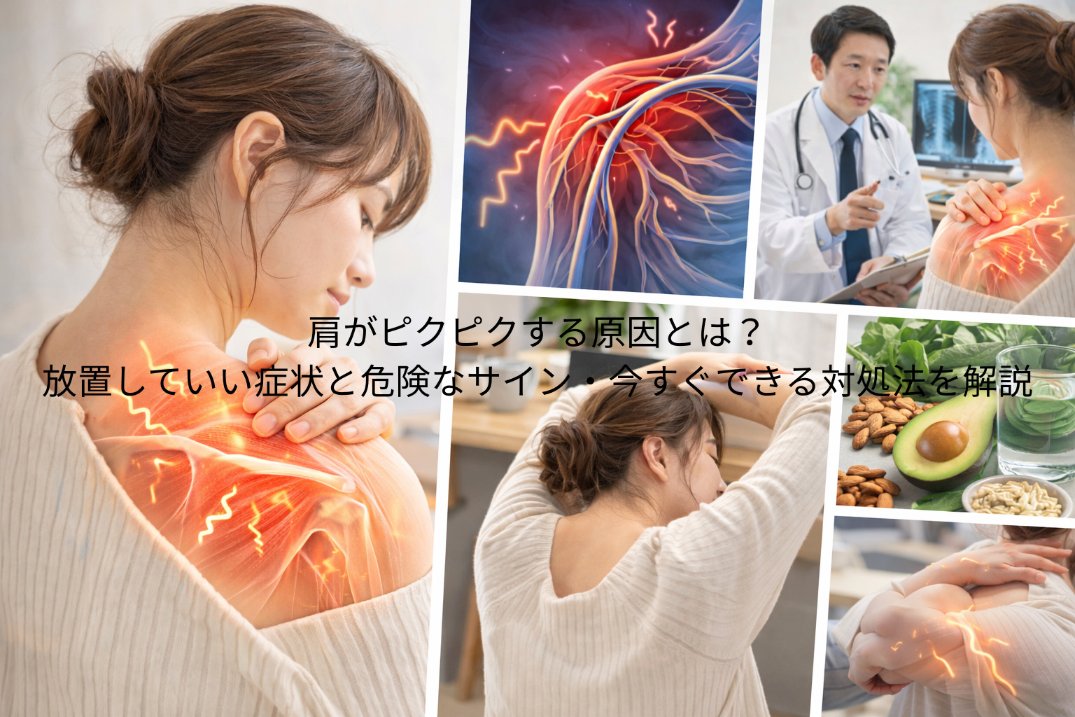 そう感じる人も多いかもしれません。実際、肩のピクピクは筋肉の疲労やストレスなどが関係して一時的に起こるケースが多いと言われています。