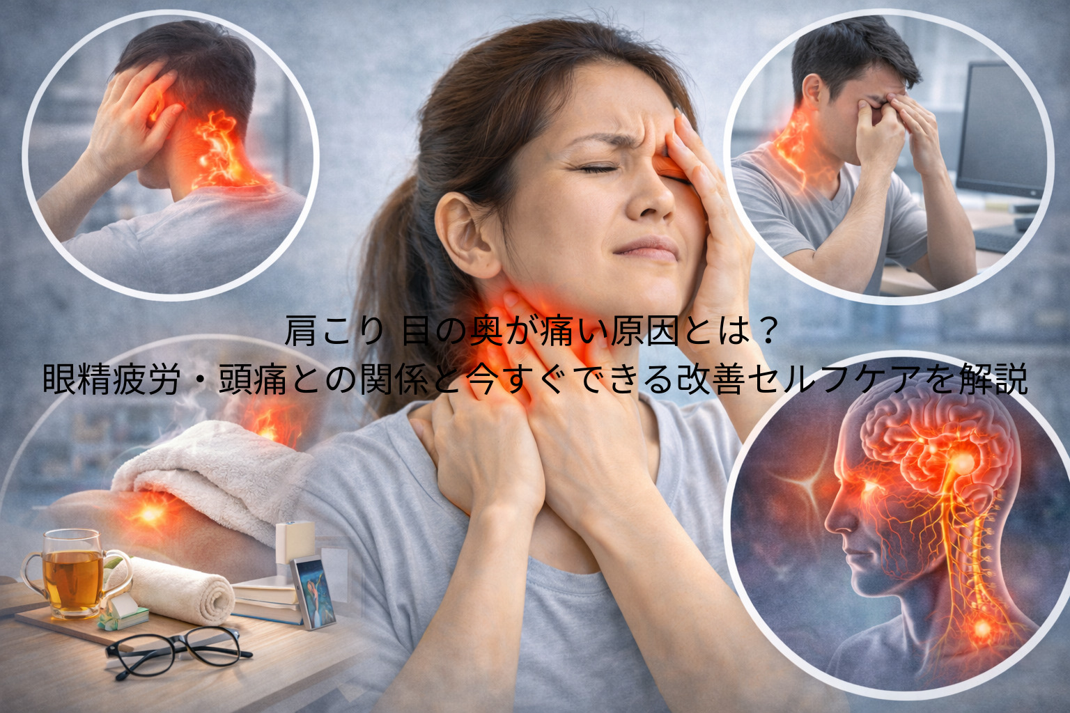 「肩こりと目の奥の痛みって、同じ原因なんですか?」