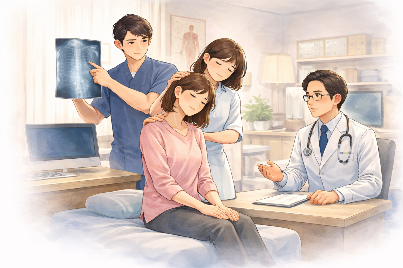 整形外科は、骨や関節、神経の状態を画像検査などで確認しながら原因を探る場合に向いているとされています。一方、整骨院や整体院では、筋肉や姿勢バランスを整える施術を中心に、日常動作の負担軽減を目的としたケアが行われることが多いと言われています。症状の強さや不安の程度によって選ぶことが大切だそうです。