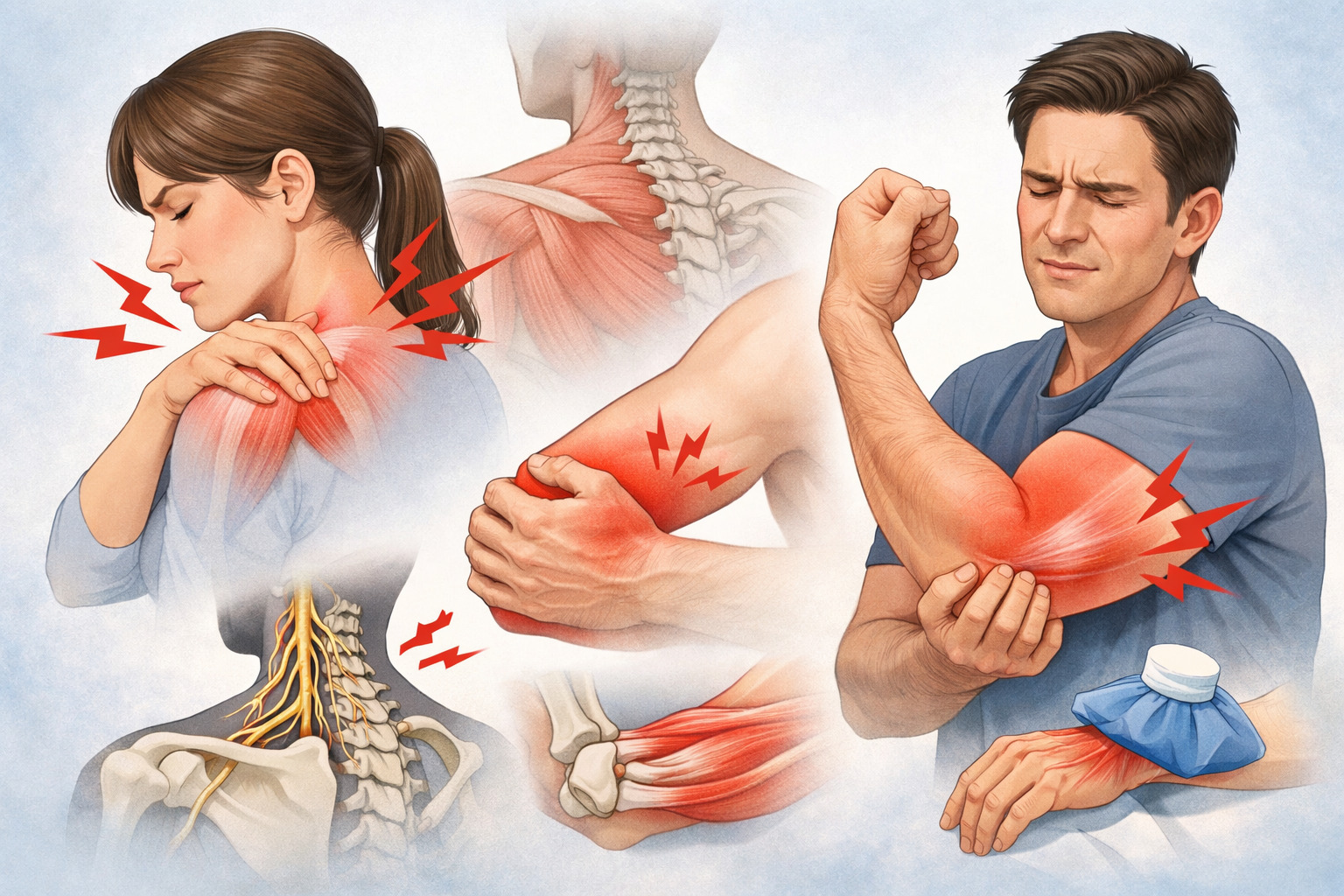 「最近、腕がなんとなく痛いんだけど、これって大丈夫かな?」そんなふうに感じたことがある方は少なくないと思います。腕の痛みと一口に言っても、その背景にはいくつかの原因があると言われています。たとえば、日常生活での使い過ぎによる筋肉の疲労や炎症、首や肩まわりの緊張による神経の圧迫などが代表的です。