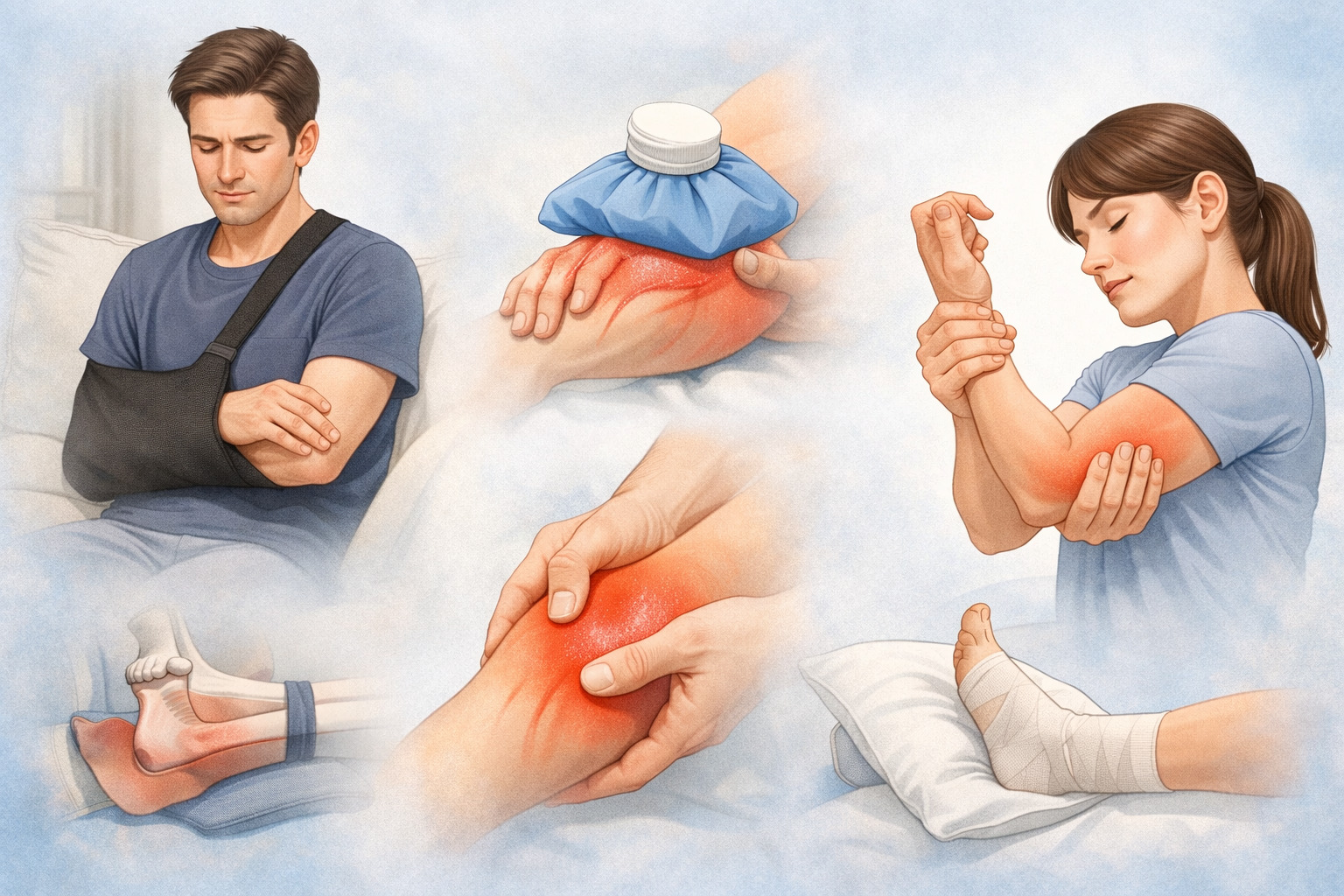 「安静って、ただ何もしないこと?」そう感じる方もいますが、ポイントは痛みを誘発する動作を避けることだと言われています。あわせてよく紹介されるのが、RICE処置です。