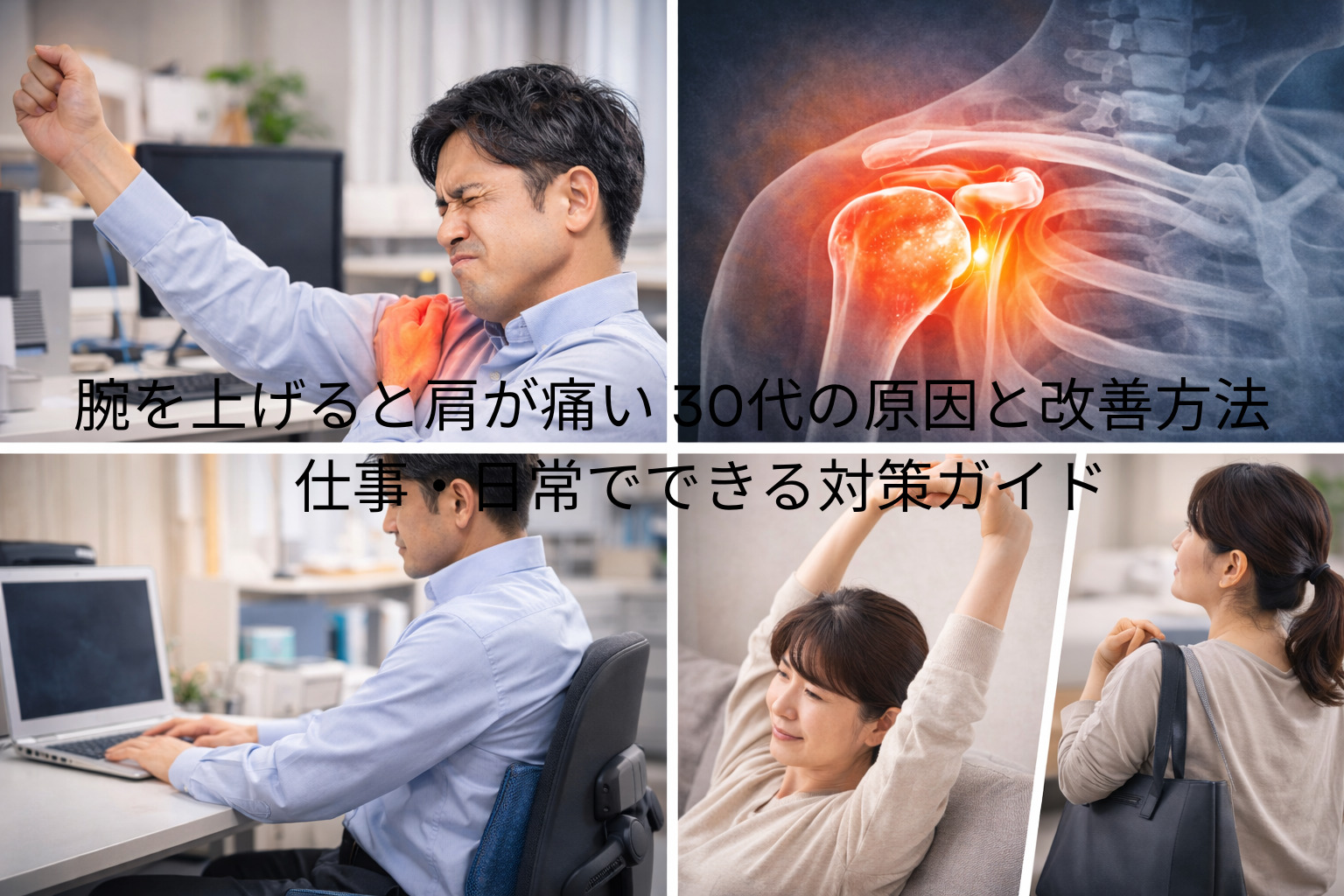 そんな声が多いのが、この検索キーワードの特徴です。30代で腕を上げると肩が痛い場合、いくつか代表的な要因が考えられていると言われています。ここでは、よく挙げられる4つの原因を整理してみましょう。