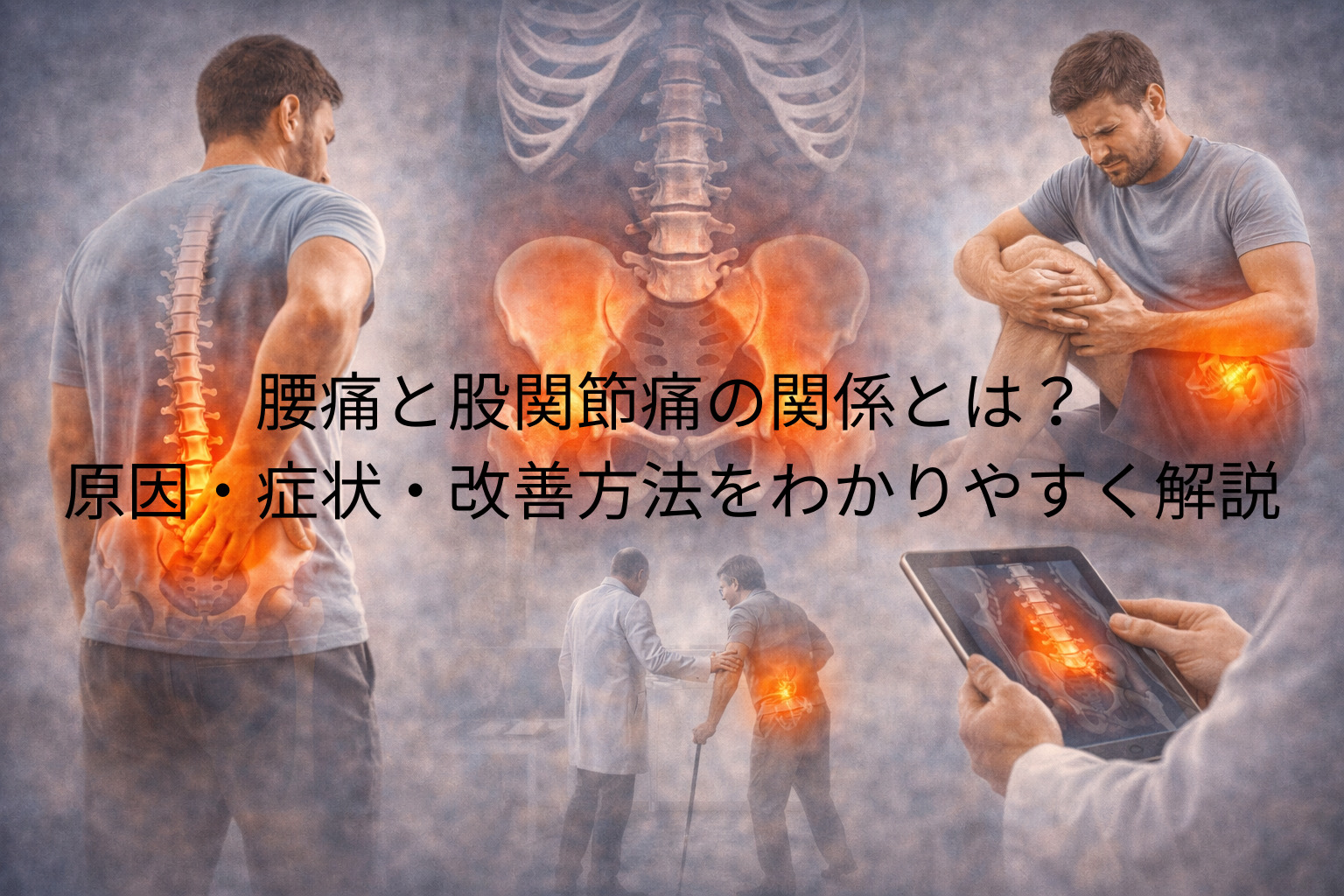 股関節に問題がある場合に腰痛が起こることもあれば、腰のトラブルが股関節の痛みにつながるケースもあると説明されています。そのため、症状を考えるときには両方の関節を含めて確認することが大切と紹介されています。