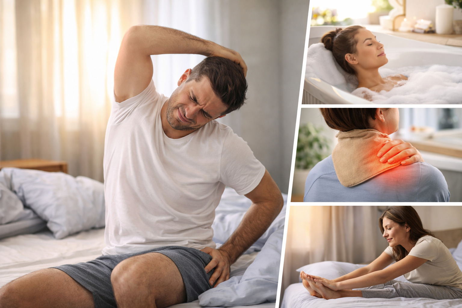 起きたら筋肉痛を感じると、そんな気持ちになりますよね。ここでは、無理をしないセルフケアを中心に、朝・日中・寝る前のポイントを整理します。