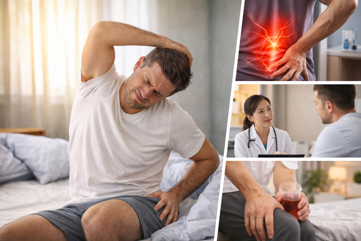 筋肉を傷めているわけではなく、冷えや動かなさによる一時的な硬さが、痛みのように感じられる場合もあると言われています。「動き出したら少し楽になる」という人は、このタイプの可能性も考えられます。