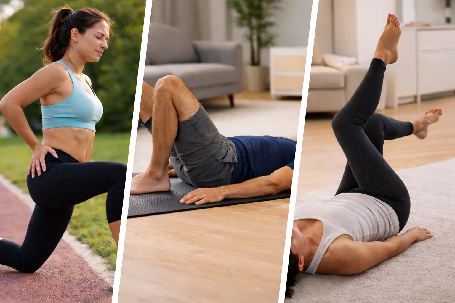 「ストレッチだけでいいの?」と思う方もいますが、支える筋肉を使える状態にすることも重要です。中殿筋や大臀筋がうまく働かないと股関節へ負担が集中しやすくなるため、軽いヒップリフトなどの運動が再発予防につながると考えられています。筋肉を“目覚めさせる”イメージで行うのがおすすめです。
