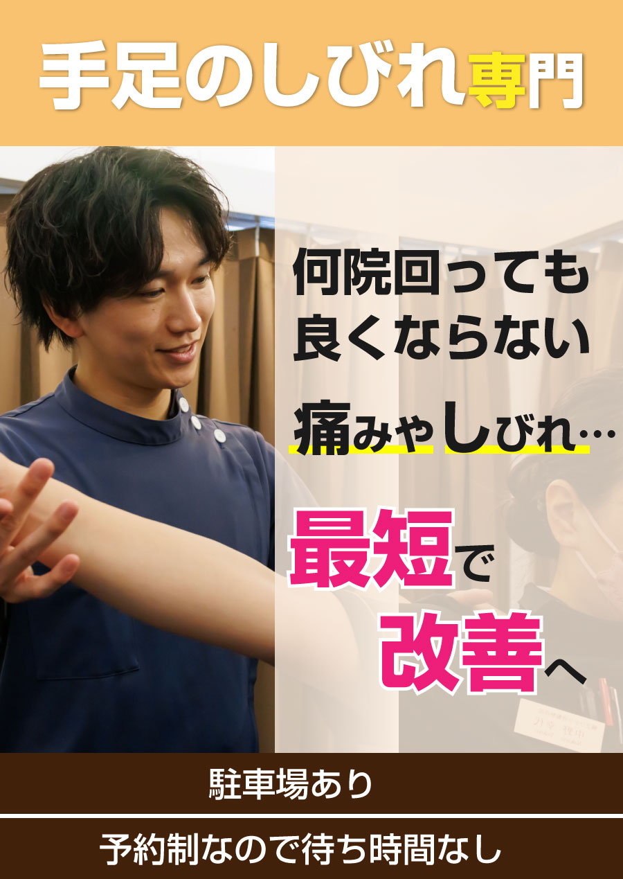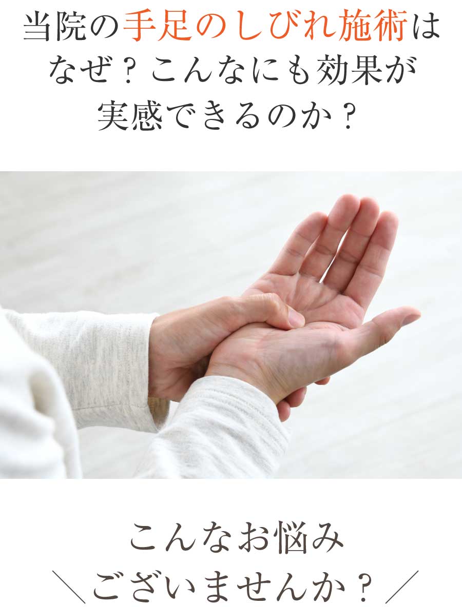 手や足のしびれは原因さえわかれば、比較的改善の早い症状です。